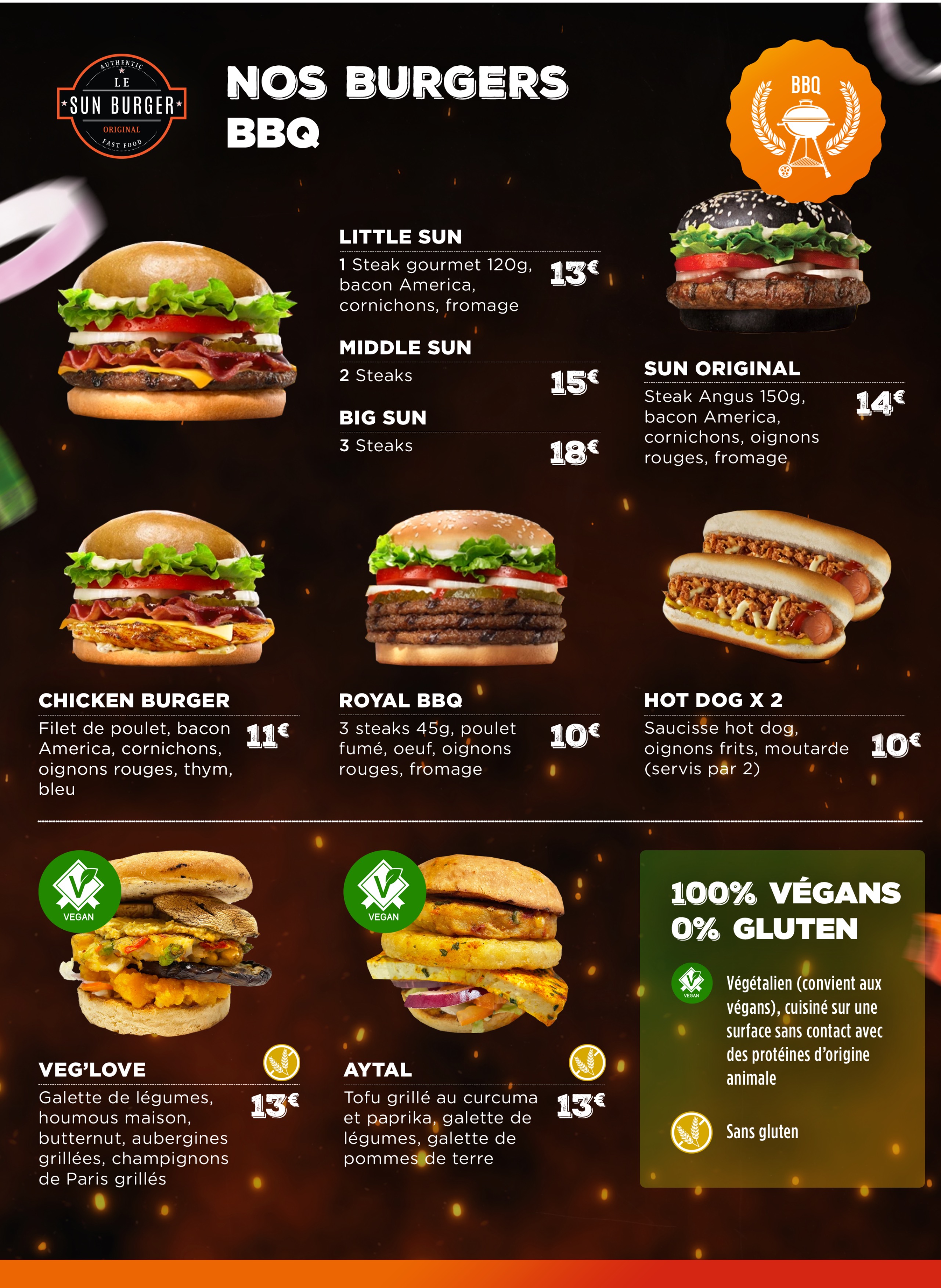 Venez nous rendre visite et laissez-vous séduire par notre carte variée et notre ambiance accueillante. Au SUN BURGER, chaque repas est une célébration du goût !